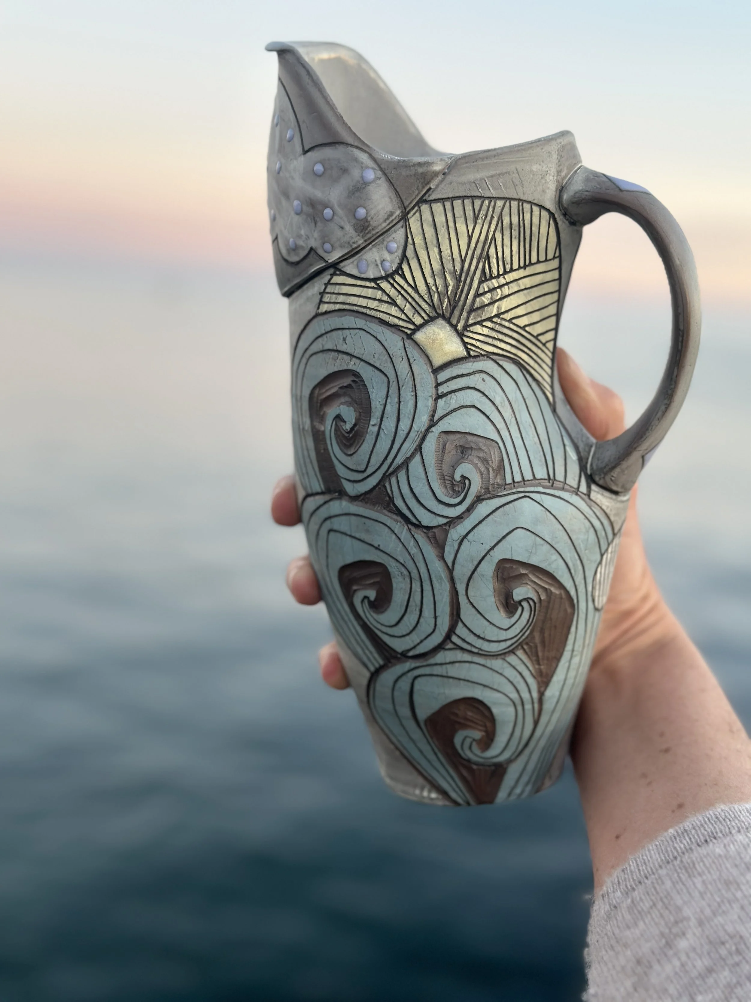 I took my first ceramic class at the University of New Mexico in 2007. I have been hooked ever since, dedicating my life to the craft. Santa Cruz, California, is my home and an inspiration for my work. The ocean waves, redwood forests, and rolling hills are the central subjects of my pieces. I intend to create vessels that enrich the eating experience. Over time, pots become like old friends, adding character and warmth to each meal. Ultimately, I aspire to make pottery that brings joy to everyday routine.
